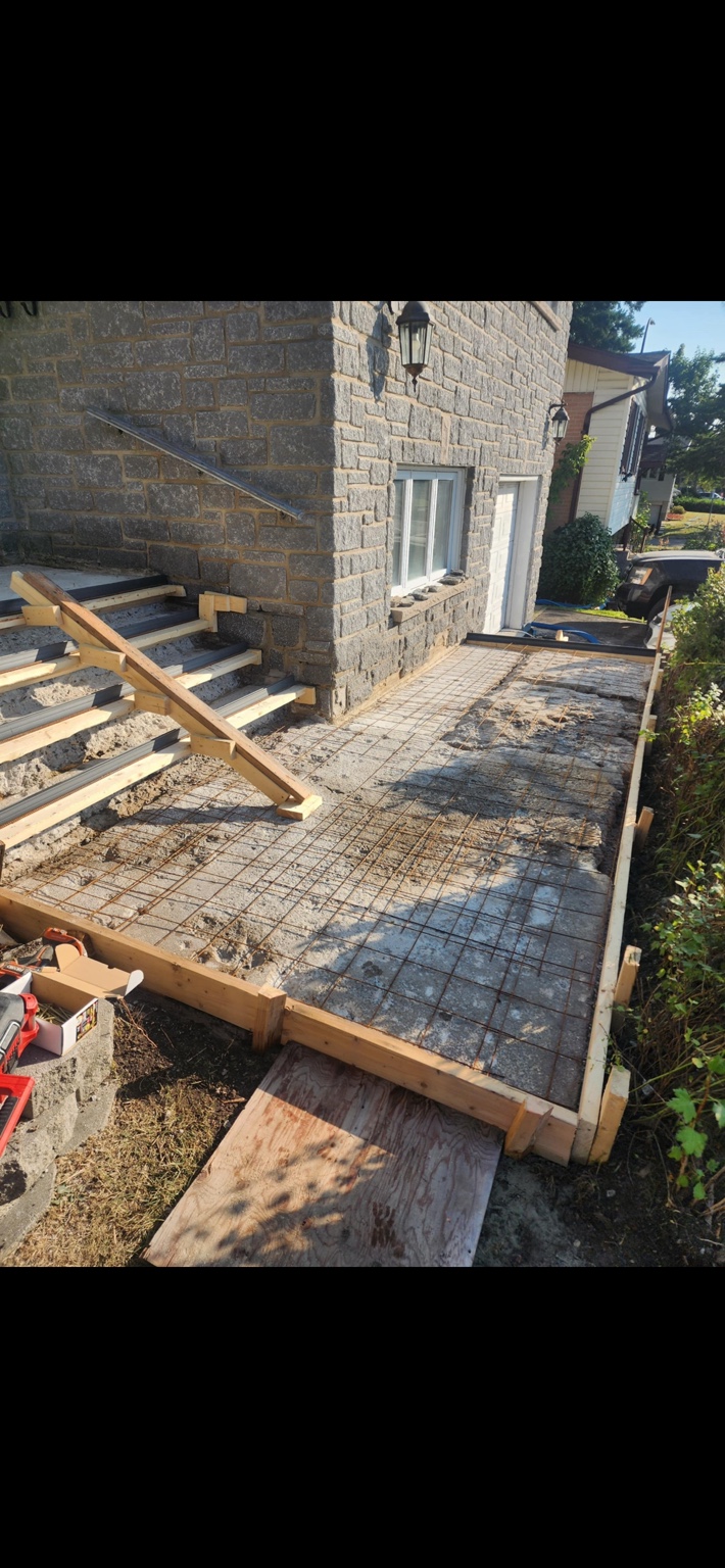 Nous offrons des services de béton, planchers de garage, marches, trottoirs, entrées et excavation avec un travail propre, solide et professionnel.